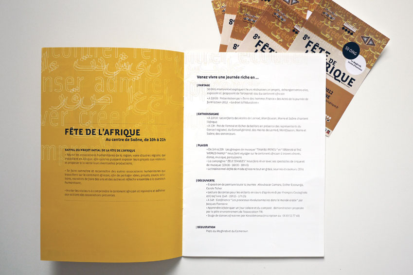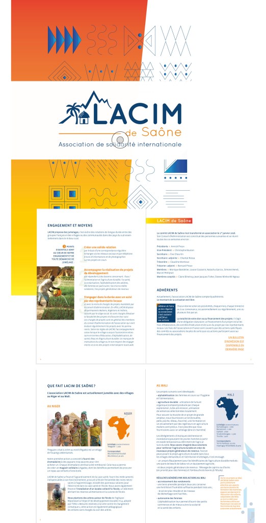 > création de l’identité visuelle et charte graphique : livret de l’association, roll-up & communication des événements : brochures, affiches, goodies…