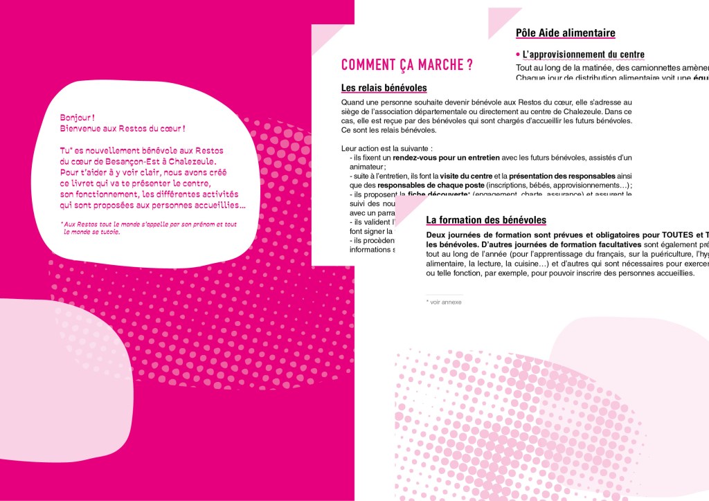 > création du livret d’accueil des bénévoles, de cartes » Relais du cœur – bébé » et de flyer