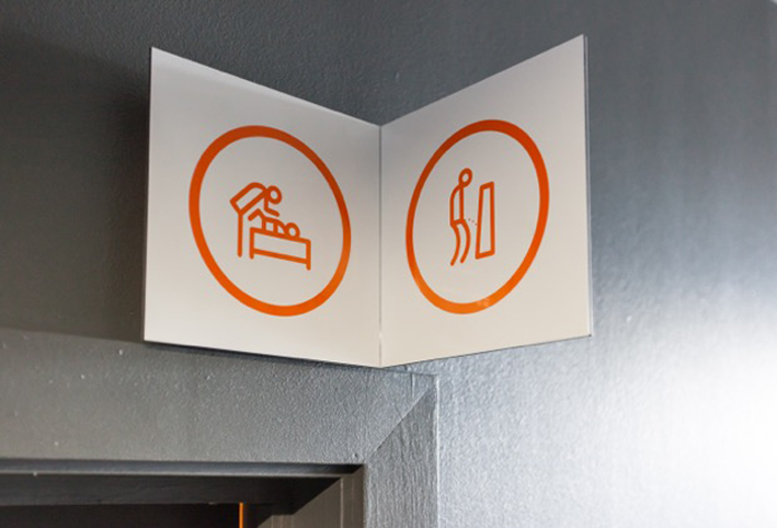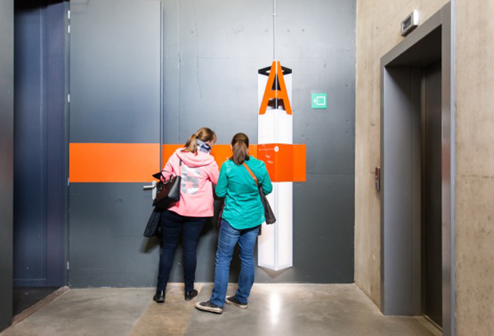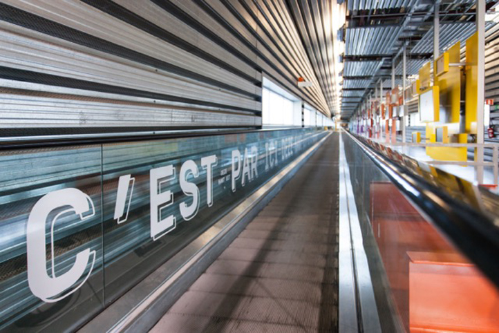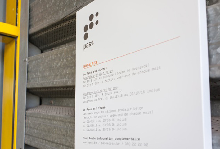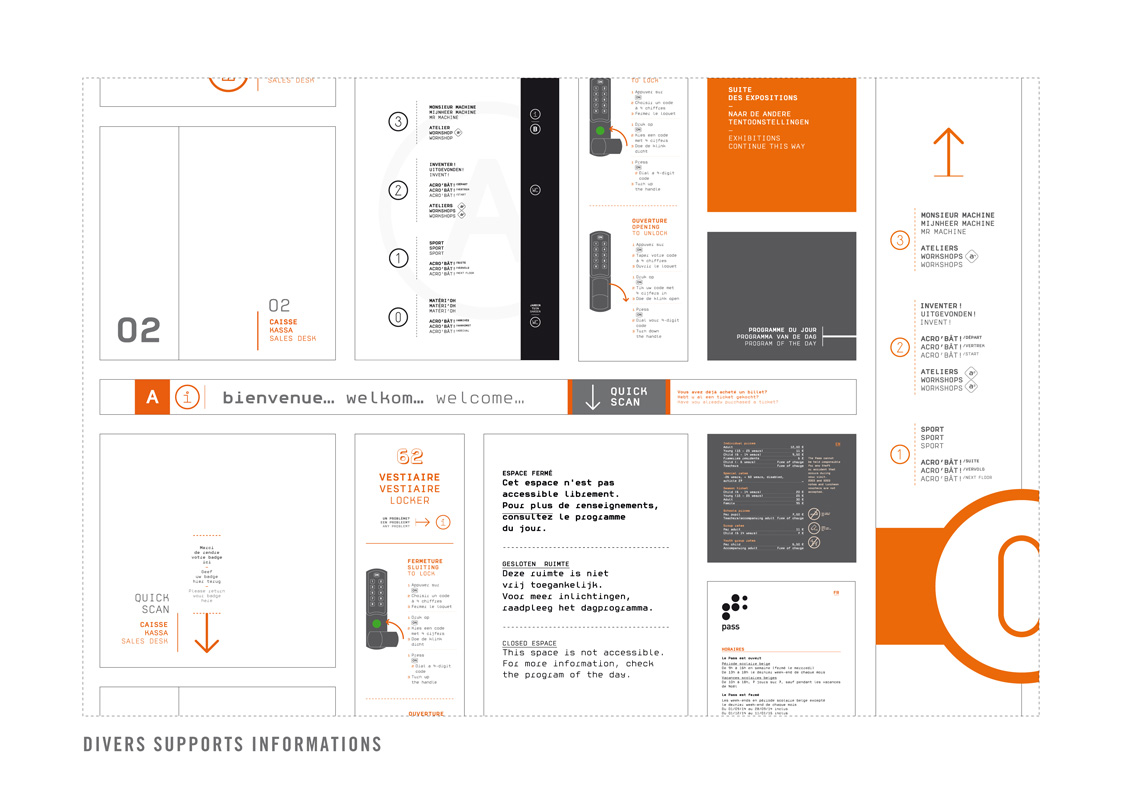 > pictogrammes, balises, guides-relais, couleurs, typographie, toute une écriture mise en place pour réaliser la nouvelle signalétique du pass – afin que les visiteurs puissent identifier facilement les lieux, s’orienter et rester informés tout au long de la visite.