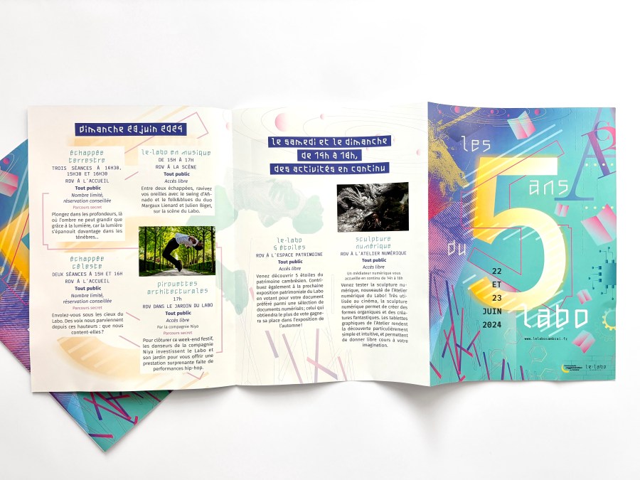 > création de l’affiche des 5 ans et de ses déclinaisons : dépliant, t-shirt, réseaux sociaux…